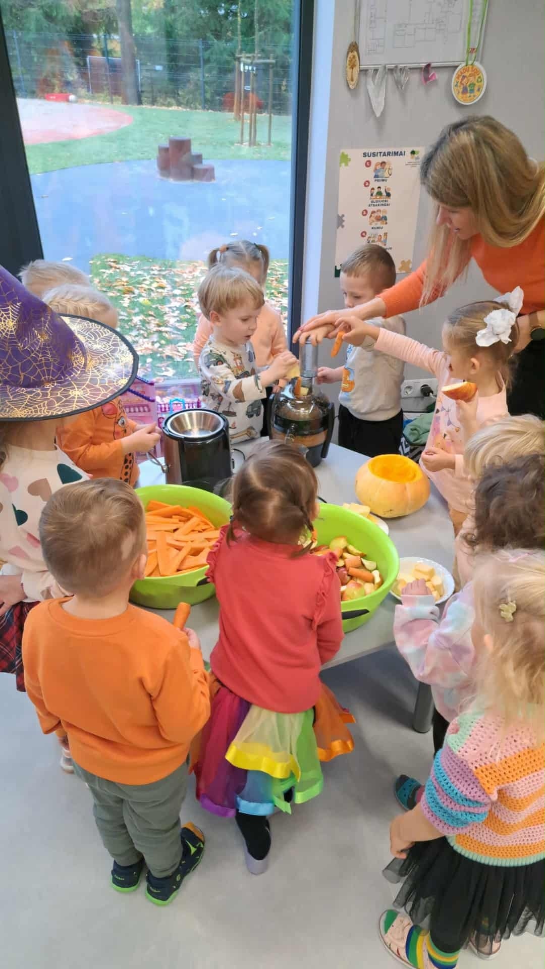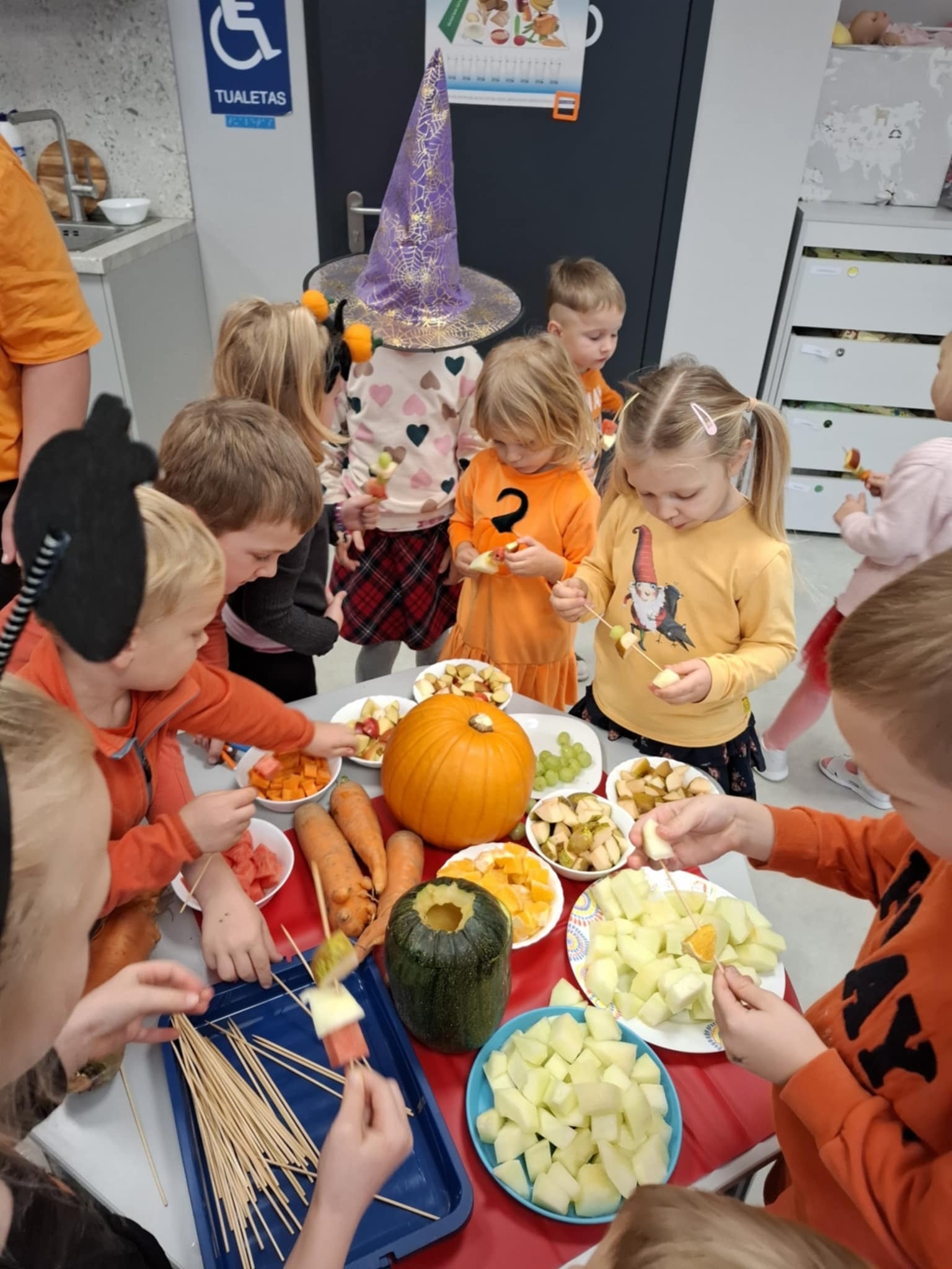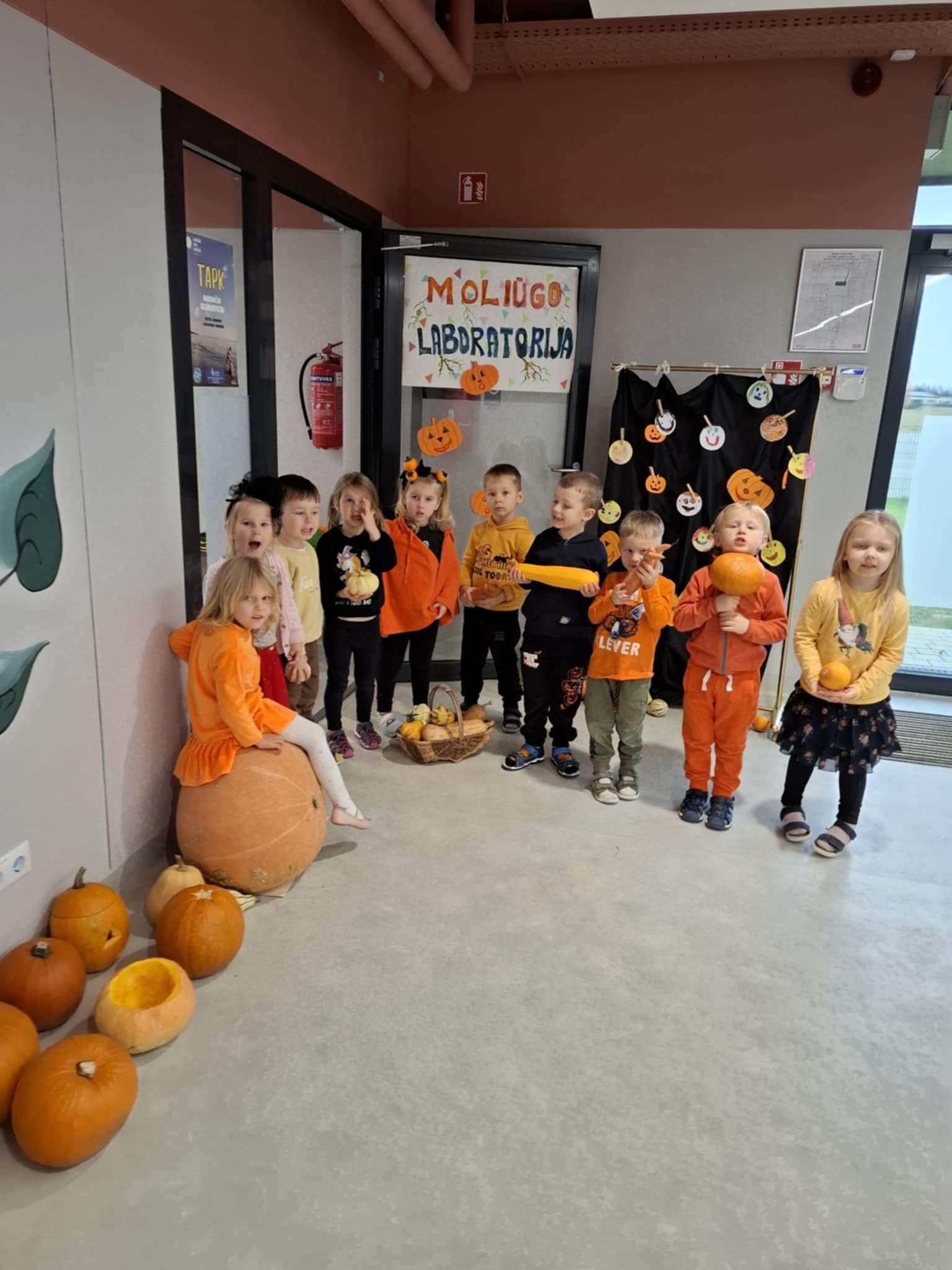 Vaikai tyrinėjo, kiek sveria moliūgai, kiek sėklų jie slepia viduje, kokios spalvos, formos ir kvapo yra šios rudens daržovės. Mažieji mokslininkai ne tik atliko bandymus, bet ir lavino kūrybiškumą – gamino moliūgus patys, lipdė kompozicijas, kūrė spalvingus darbelius ir net patiekalus!