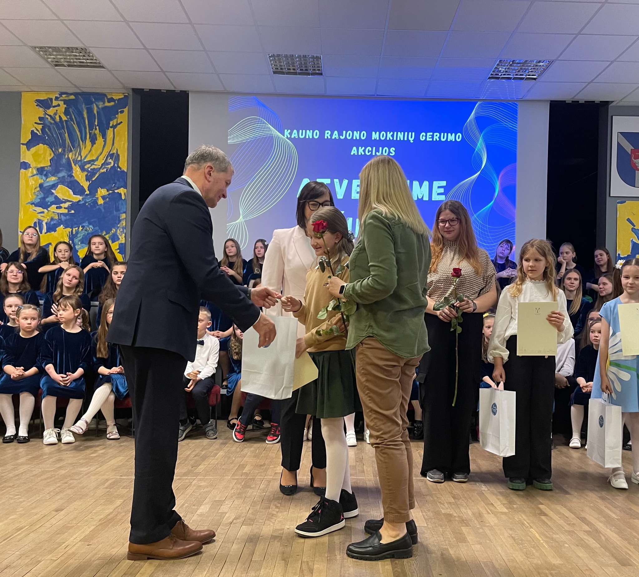 mūsų mokyklos mokinių atstovai ir socialinė pedagogė lankėsi Garliavos Jonučių progimnazijoje, kurioje vyko X Kauno rajono mokinių gerumo akcijos „Atverkime širdis“ teikiant pagalbą Ukrainai baigiamasis-padėkos renginys.